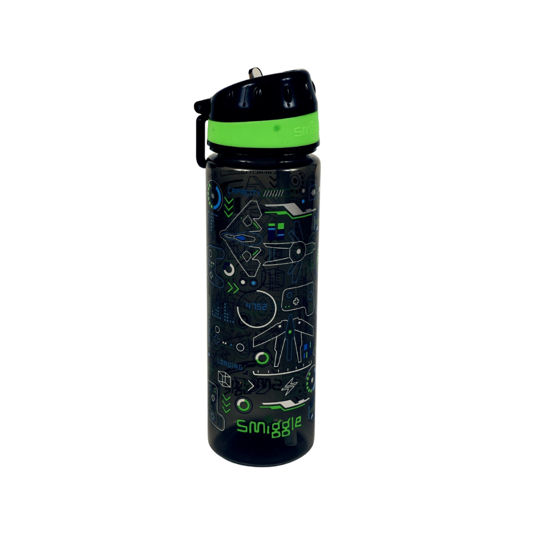 Power up your day with this futuristic Smiggle water bottle! Featuring a high-tech, gaming-inspired design in green and blue tones, it includes a flip-top lid, carry handle, and durable build—perfect for school, sports, and on-the-go adventures.