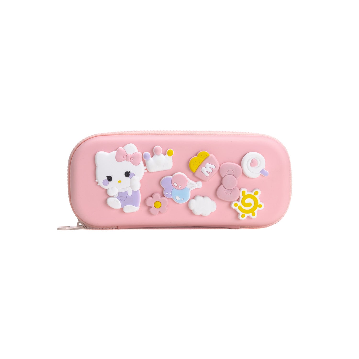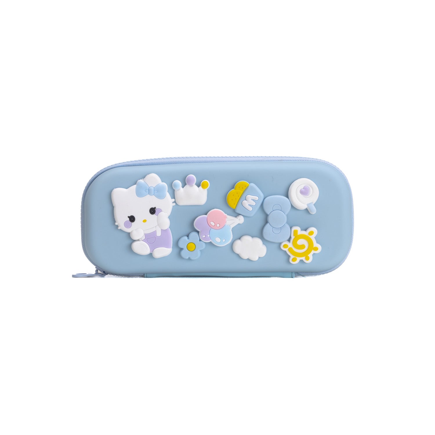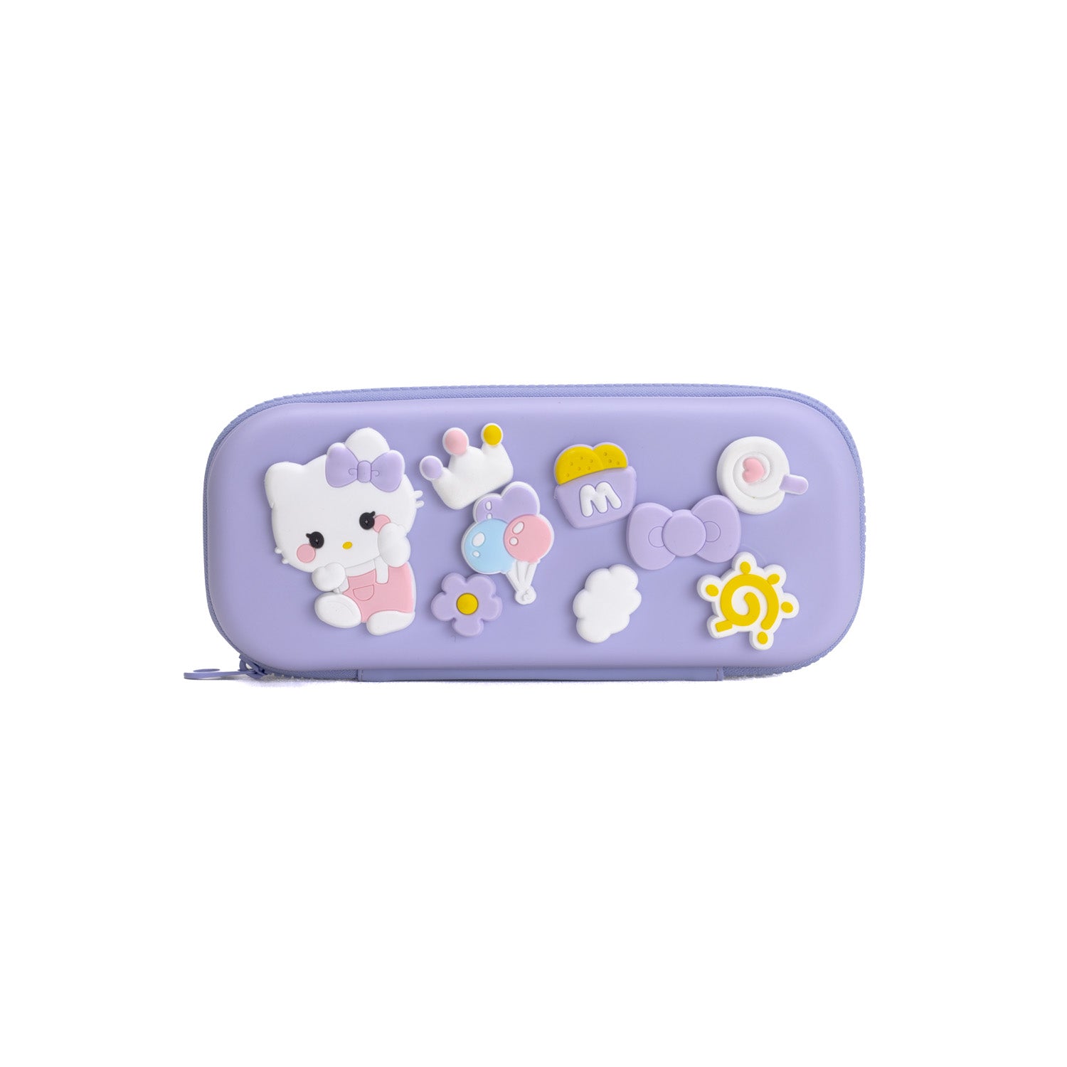 These adorable Hello Kitty pencil cases come in three pastel colors: light blue, pink, and lavender. Each case features a charming Hello Kitty design and fun 3D embellishments, making them perfect for storing stationery and adding a touch of cuteness to any desk or bag.