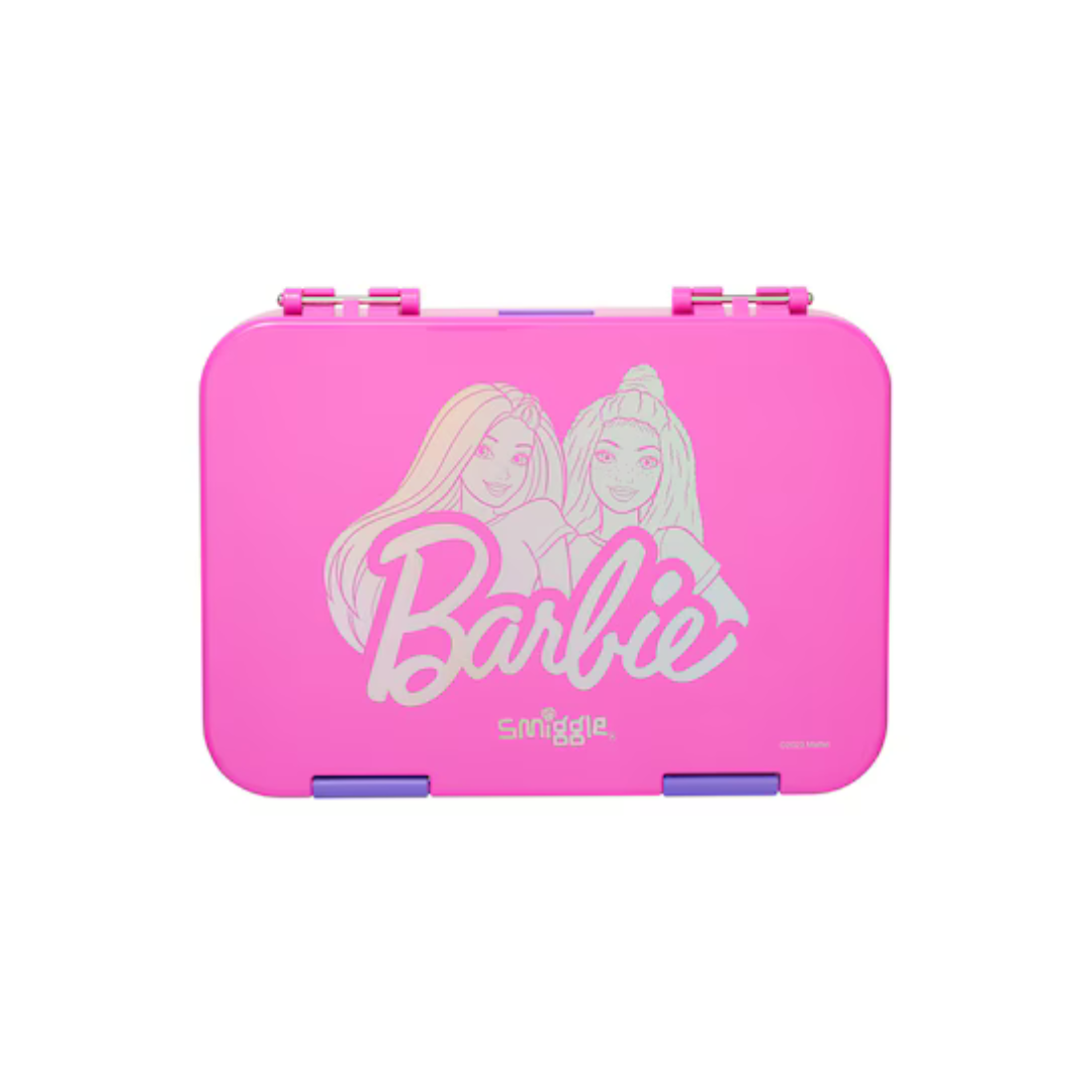 This Smiggle Barbie lunchbox is perfect for any Barbie fan! The vibrant pink design features a holographic Barbie logo with an image of two Barbie dolls. It's spacious enough to hold all your lunchtime essentials and is built to last. The stylish design makes it a fun and fashionable way to carry your lunch.