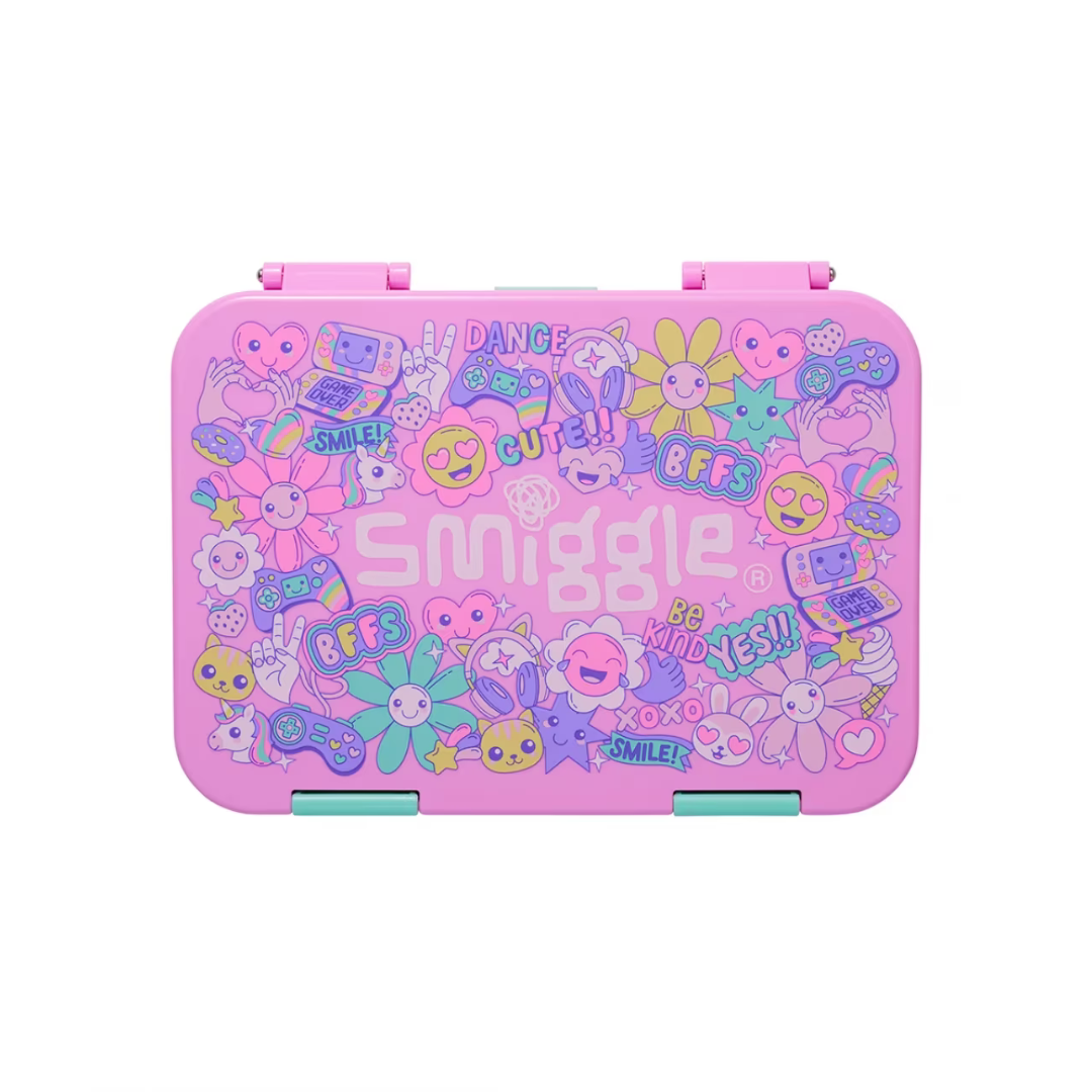 This Smiggle Lunchbox is the perfect blend of cute and practical. Its pink design features adorable characters, flowers, and positive messages, making lunchtime fun and cheerful. Durable and the perfect size for packing all your essentials.